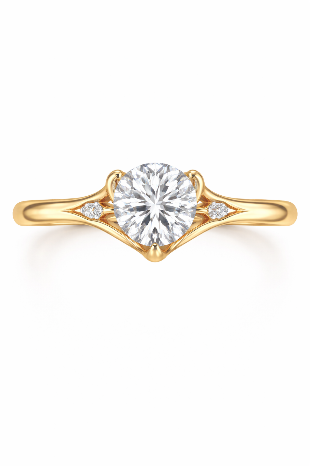 At the heart of this design sits a dazzling round brilliant-cut lab-grown diamond, chosen for its exceptional fire, clarity, and sparkle. The refined detailing along the gallery adds depth and dimension while maintaining a clean, modern aesthetic suitable for everyday elegance or once-in-a-lifetime proposals.