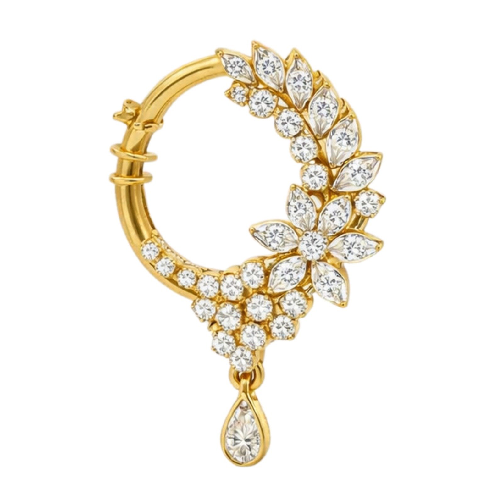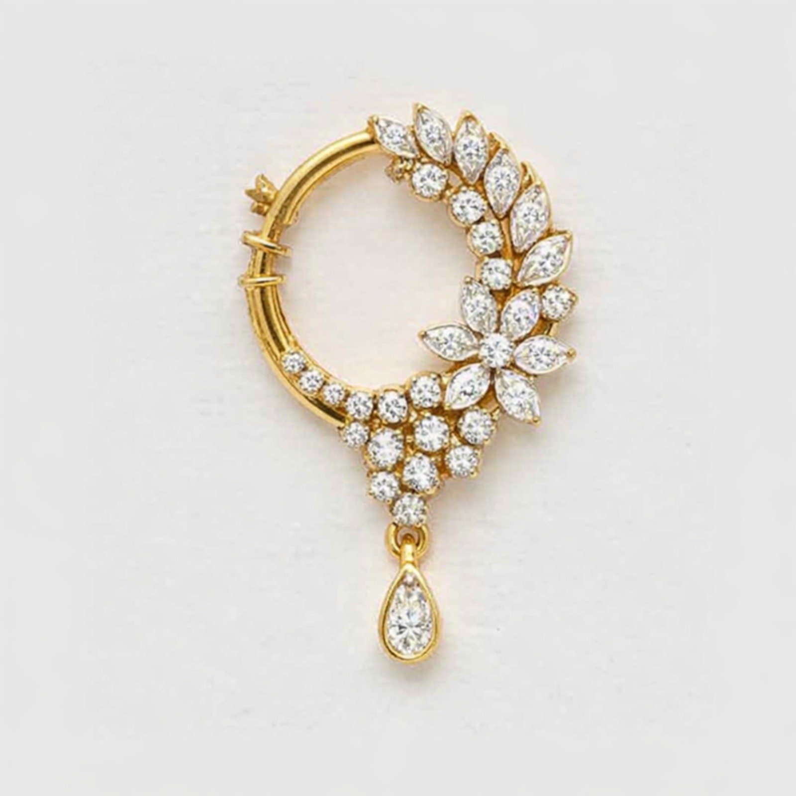 Crafted in lustrous gold and adorned with ethically sourced, lab-grown diamonds, Elara Bloom is perfect for those who appreciate refined luxury with a feminine touch. Whether styled for a wedding celebration, festive occasion, or an elegant evening affair, this hoop elevates your look with timeless charm and effortless grace.