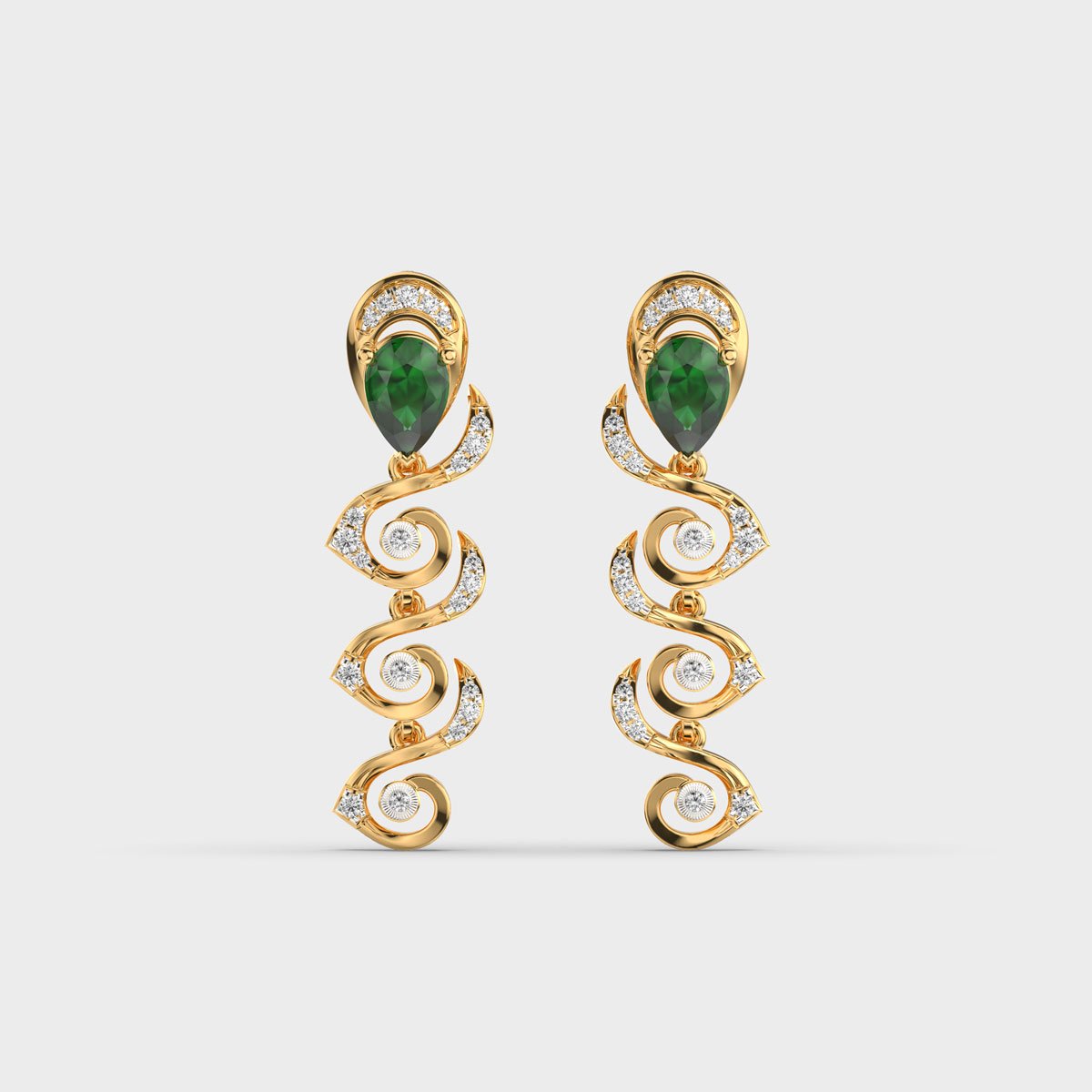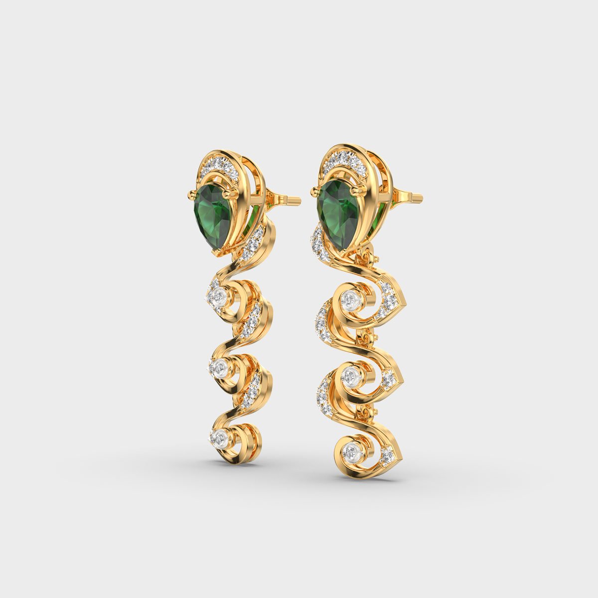 A graceful flow of color and light, the Green Cascade Spiral Diamond Danglers are a celebration of movement and modern elegance. Designed in a fluid spiral silhouette, these danglers feature shimmering diamonds accented with vivid green stones, creating a cascading effect that catches the light with every turn.